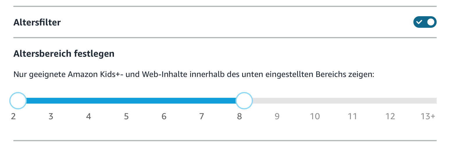 Zusätzlich gibt es das kostenpflichtige Zusatzangebot Amazon Kids+. Dieses bietet weitere Inhalte, ist aber für die Kinderschutzeinstellungen nicht notwendig.